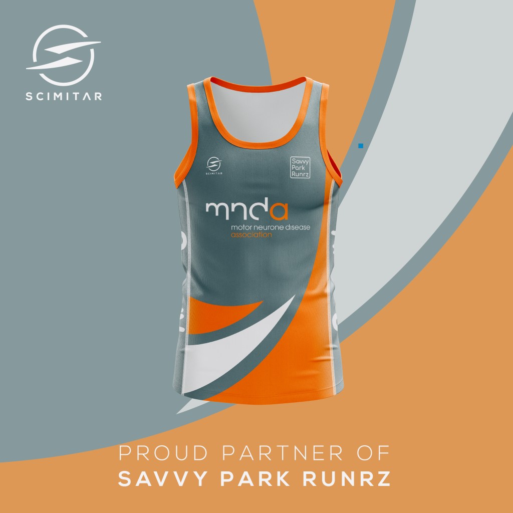 Our running vest or t-shirt (subject to availability) – are from Scimitar Sports – on the left. Please check the size guide.